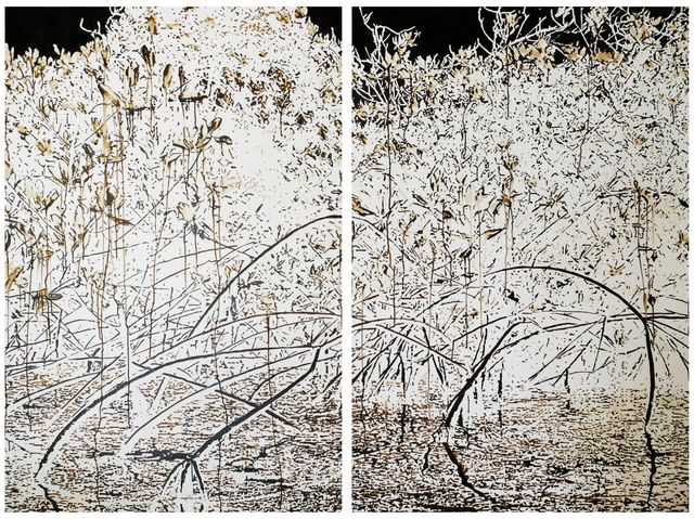 dumped residual material from Rosignano Solvay on canvas